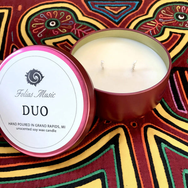 To honor the power of fire and the duo, she designed and hand-poured double-wicked candles. These are small-batch, unscented, premium soy wax candles with over 30 hours of burn time. The 8oz. resealable burgundy tin contains 7.2oz of soy wax.